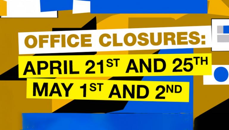 We'd like to inform you that our Headquarters will be closed on April 21st and 25th, as well as on May 1st and 2nd.